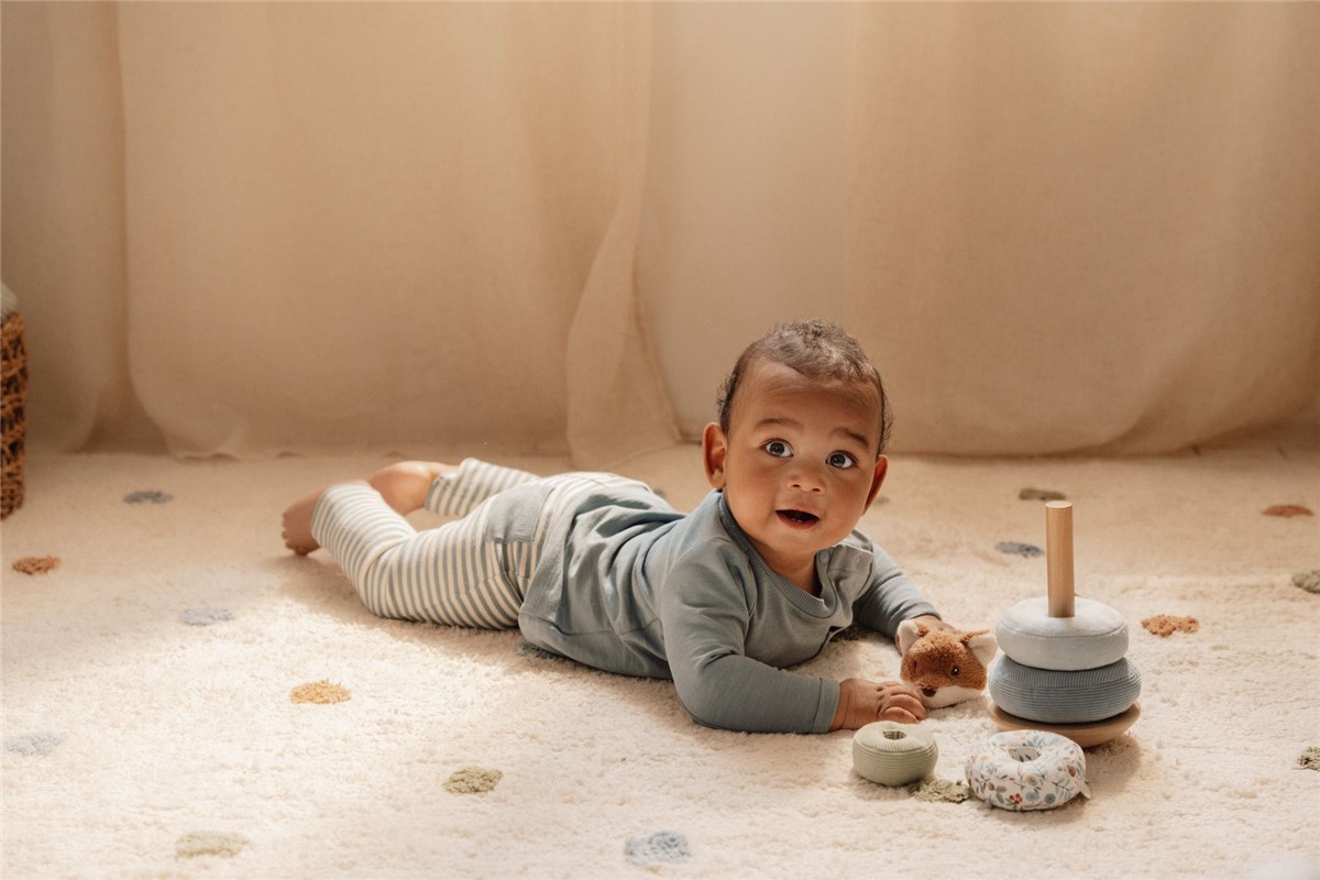 ¡Apila los anillos en la base mecedora y deja que el zorro baile y gire! Es todo un desafío apilar los anillos sobre una base de madera que se balancea hacia adelante y hacia atrás. Sin embargo, el adorable zorro te anima a persistir y lo celebrará con un pequeño baile una vez que la pirámide esté completa. Cada encantador anillo presenta un diseño único inspirado en la colección Forest Friends. Este apilador de anillos oscilantes está diseñado para mejorar la coordinación ojo-mano a través de un juego práctico y divertido. Que comience la aventura del apilamiento