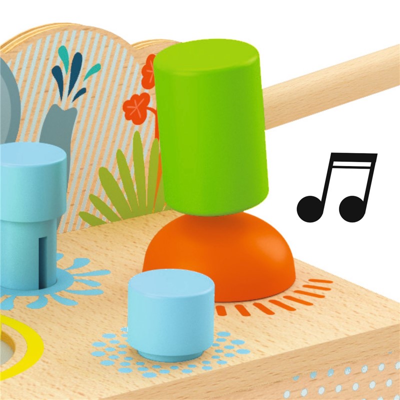 ¡Descubre la diversión con el Multi Tap de Djeco! Este encantador juguete de madera es perfecto para pequeños exploradores desde los 18 meses. Con su divertido martillo, los niños pueden experimentar tres diferentes acciones: golpear una pelota que sale rodando, hacer bailar cilindros azules y crear sonidos con un simpático hongo.