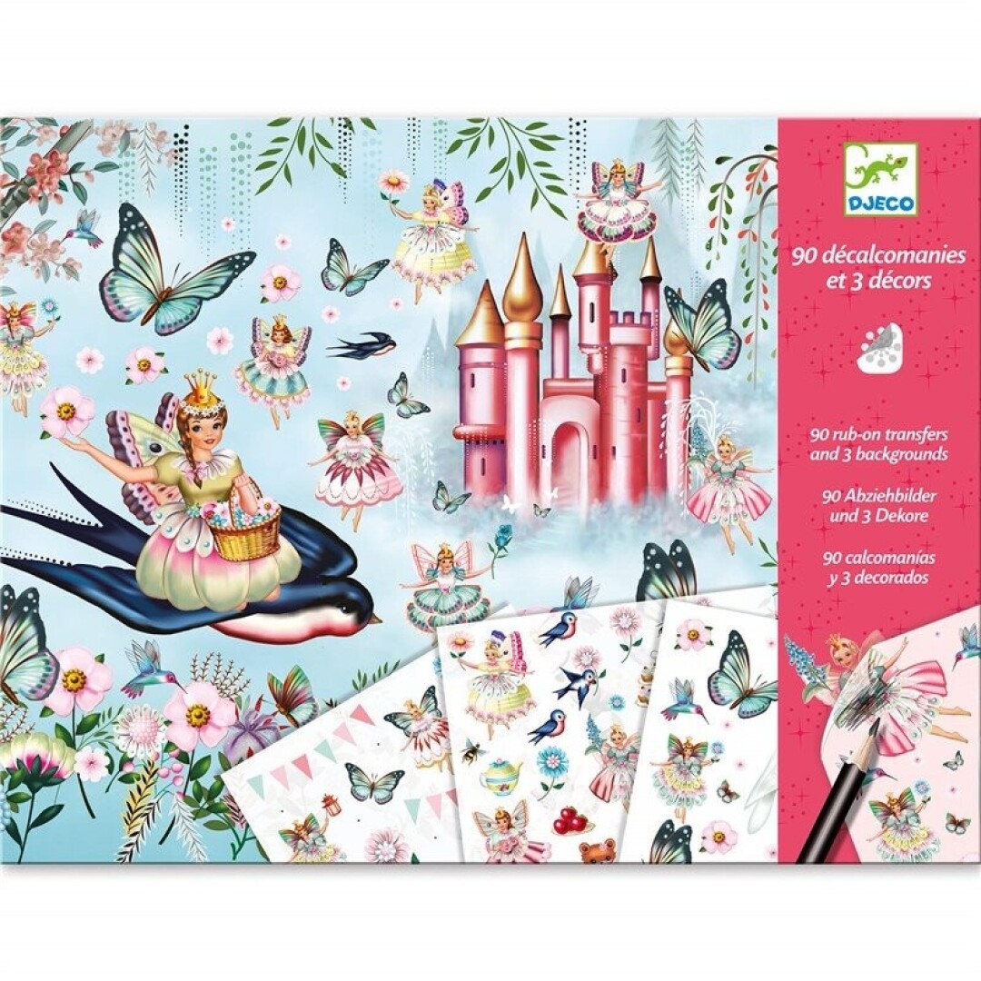 Es súper fácil de usar: solo elige un decorado, coloca las calcomanías donde prefieras y frótalas suavemente con un lápiz. ¡Listo! Cada escena cobrará vida con hermosas hadas, flores mágicas y elementos fantásticos.