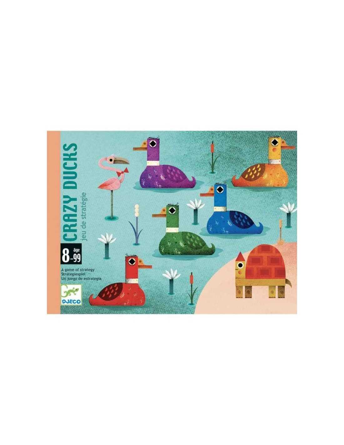 Descubre Crazy Ducks de Djeco, un ingenioso juego de cartas que combina diversión y desarrollo mental para toda la familia. Este mini juego táctico desafía a los jugadores a usar su lógica y deducción para encontrar el pato de tres patas que esconde el oponente.