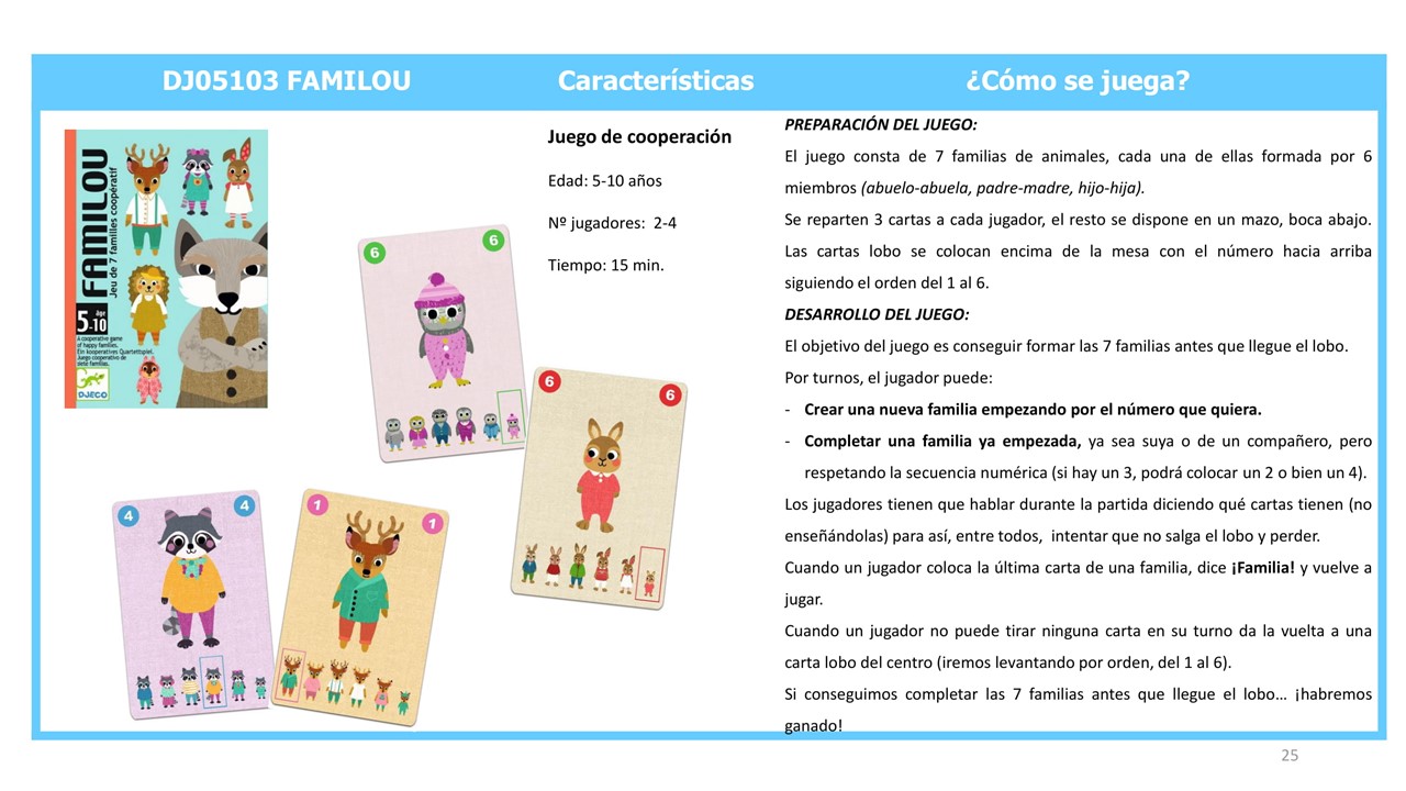 ¡Descubre este emocionante juego de cartas cooperativo donde todos juegan unidos contra el astuto lobo! Con 7 adorables familias de animales para coleccionar, los pequeños aprenderán el valor del trabajo en equipo mientras se divierten.