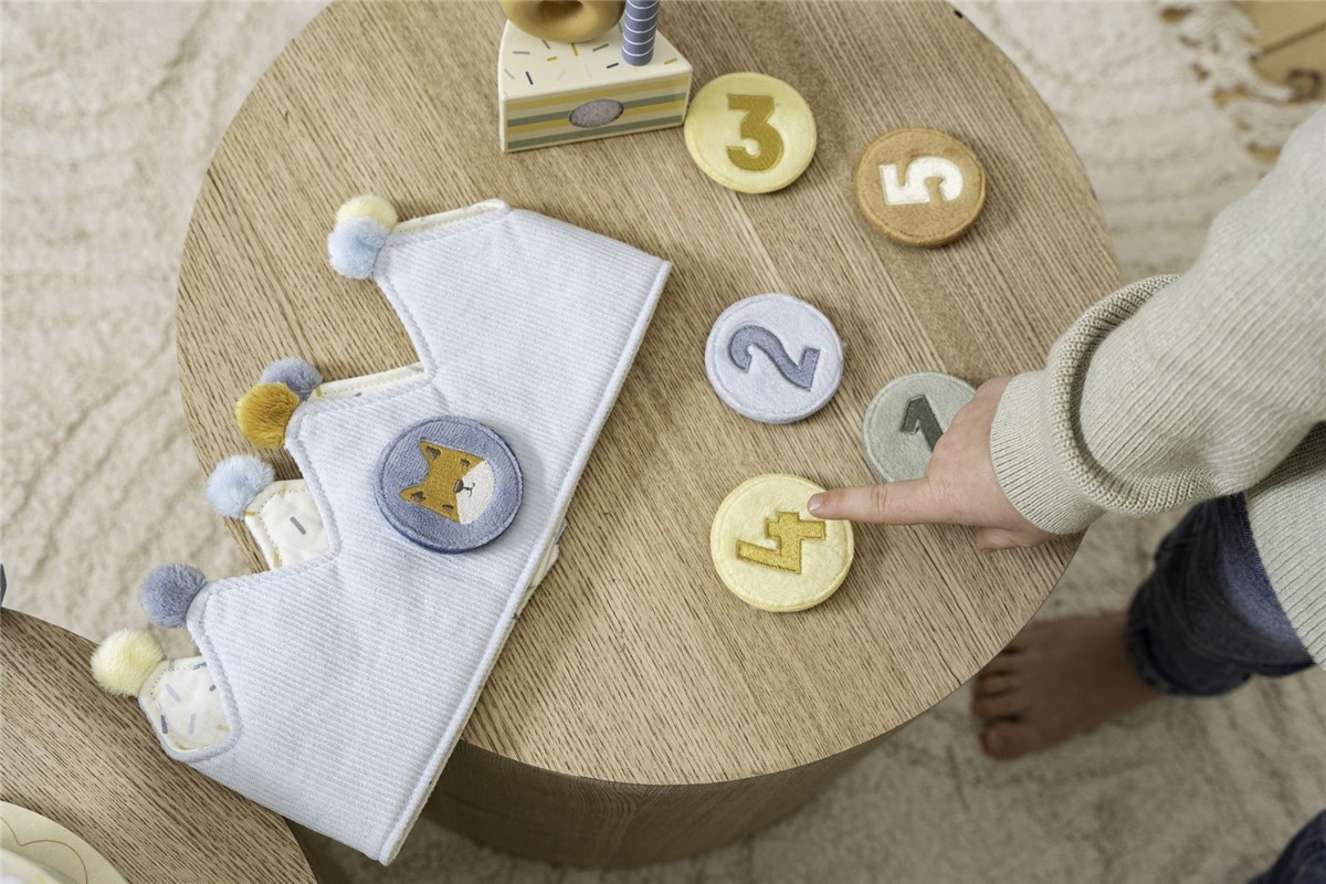 ¡Feliz cumpleaños! Celebra con estilo con esta adorable corona de cumpleaños y espolvoree un poco de magia de cuento de hadas en su día especial. Viene con números intercambiables del 1 al 5, lo que lo hace perfecto para los hitos de crecimiento de su pequeño. ¡Adjunta el número de cumpleaños a la corona y captura esos preciosos momentos! U opta por el parche de un animal cuando tu pequeño quiera ser el rey o la reina del país de las maravillas. La corona está confeccionada en suave tejido acolchado y acanalado en color azul claro rematada con pompones de colores. El cierre de velcro permite que la corona se adapte y crezca con su hijo. Observe a su pequeño usar la corona con orgullo, mostrando su edad con cada sonrisa y risita. ¡Feliz celebración!
