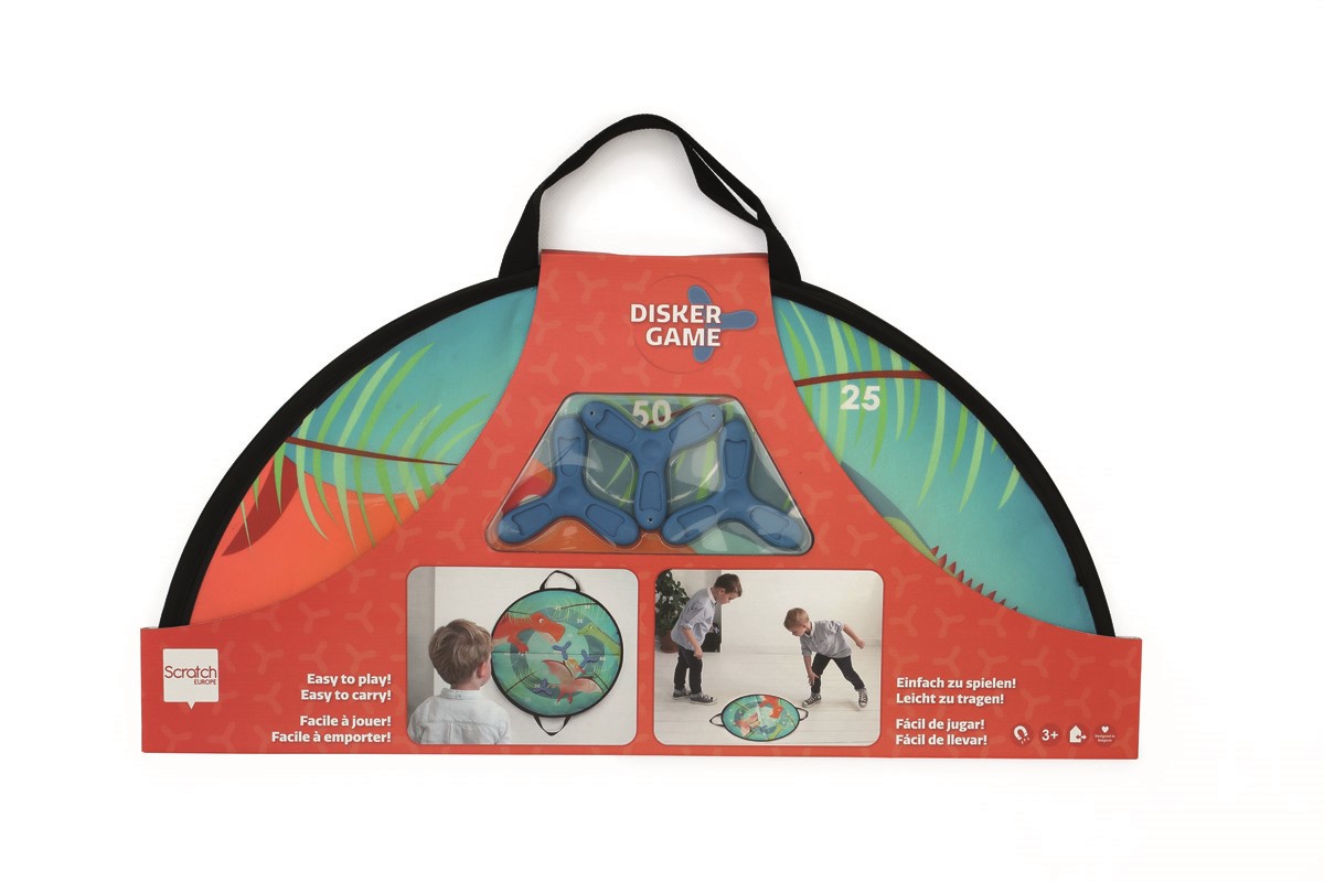 Este concepto original y único es una nueva variante de los populares juegos activos de Scratch. Lanza los diskers magnéticos, fabricados en silicona, hacia el tablero e intenta conseguir la mayor puntuación posible. Puedes jugar en el suelo o colgar el t