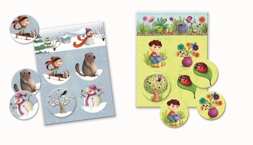 ¿Cómo se juega? Simple y entretenido: cada jugador elige su estación favorita (invierno, primavera, verano u otoño). Las fichas se mezclan boca abajo y, por turnos, cada uno voltea una tratando de completar su tablero.