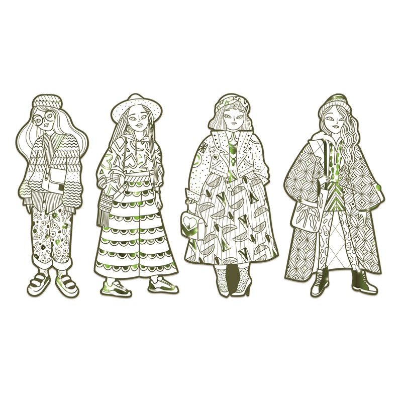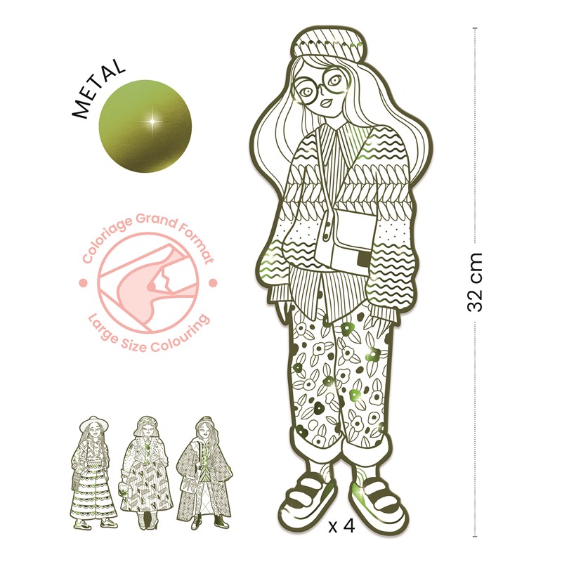 ¡Dale vida a tus diseños de moda con estas increíbles siluetas para colorear! El set incluye 4 elegantes figuras de 32 cm de altura, perfectas para desatar tu creatividad. Lo que hace único a este producto son sus detalles en líneas metálicas brillantes que harán lucir tus creaciones aún más espectaculares.