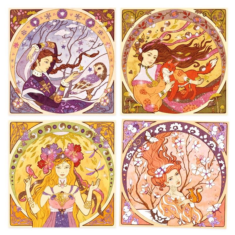 ¡Descubre el fascinante mundo del Art Nouveau con este mágico kit de pintura con purpurina! Inspirado en el estilo del legendario Alfons Mucha, este set permite crear hermosas ilustraciones de mujeres rodeadas de elementos naturales.