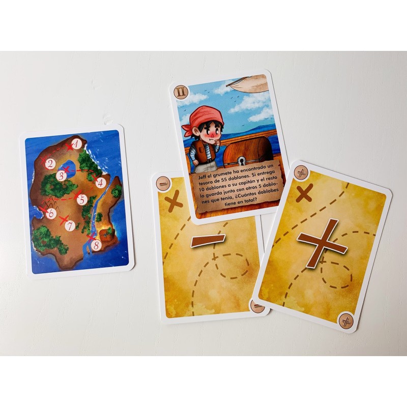 Ayuda al joven Jeff el Grumete a conseguir un tesoro y convertirse en un Capitán Pirata resolviendo los diferentes problemas matemáticos que se encontrará en su camino.