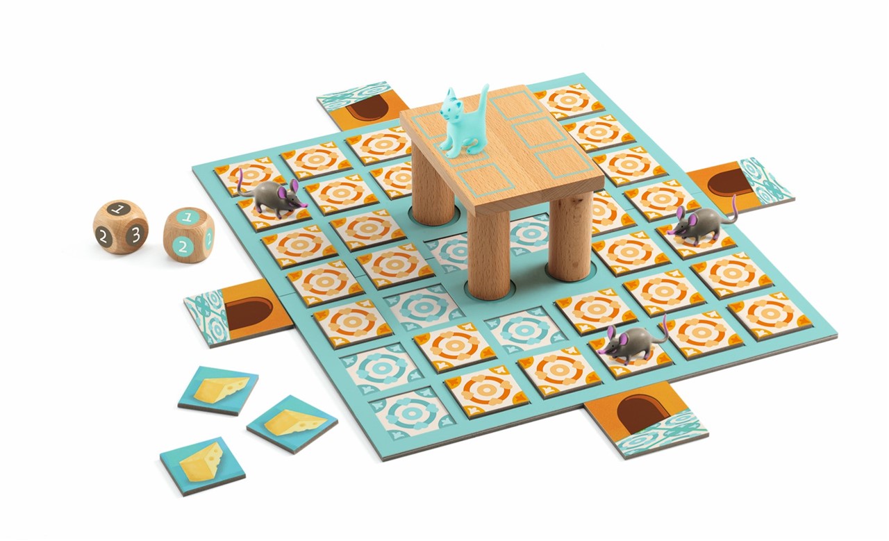 Chop Chop es el juego perfecto para toda la familia donde la astucia y la cooperación son la clave. ¿Te atreves a ser uno de los ratoncitos que intentan conseguir 10 deliciosos quesos mientras escapan del travieso gato? ¿O prefieres ser el felino cazador?