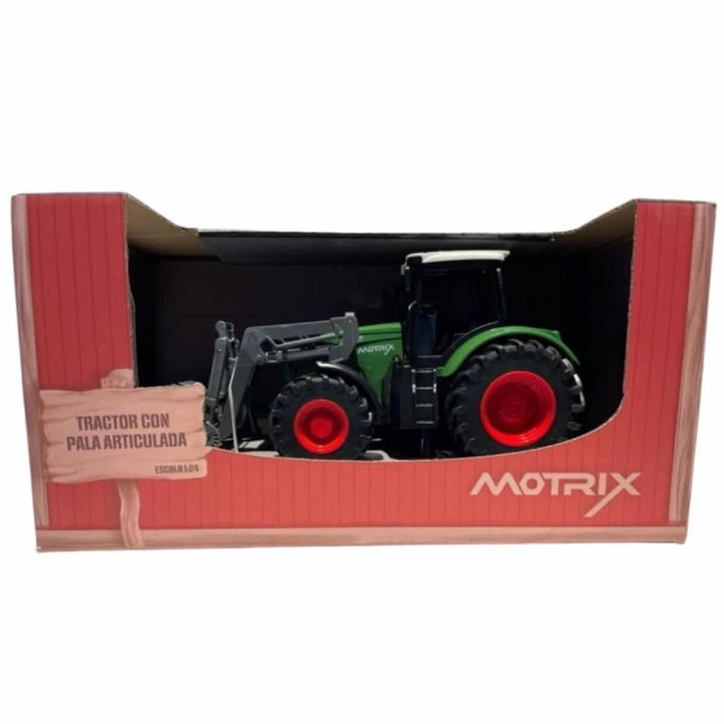¡Descubre el Tractor Motrix con Pala, el compañero perfecto para las aventuras agrícolas de los más pequeños! Este resistente juguete a escala 1:24 destaca por su pala articulada frontal y su enganche trasero, permitiendo recrear todo tipo de trabajos en el campo.