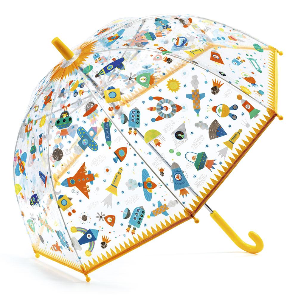 ¡Convierte la lluvia en una aventura espacial con nuestro fascinante paraguas transparente! Este accesorio único está decorado con adorables ilustraciones de astronautas y planetas que te harán sonreír incluso en los días más grises.