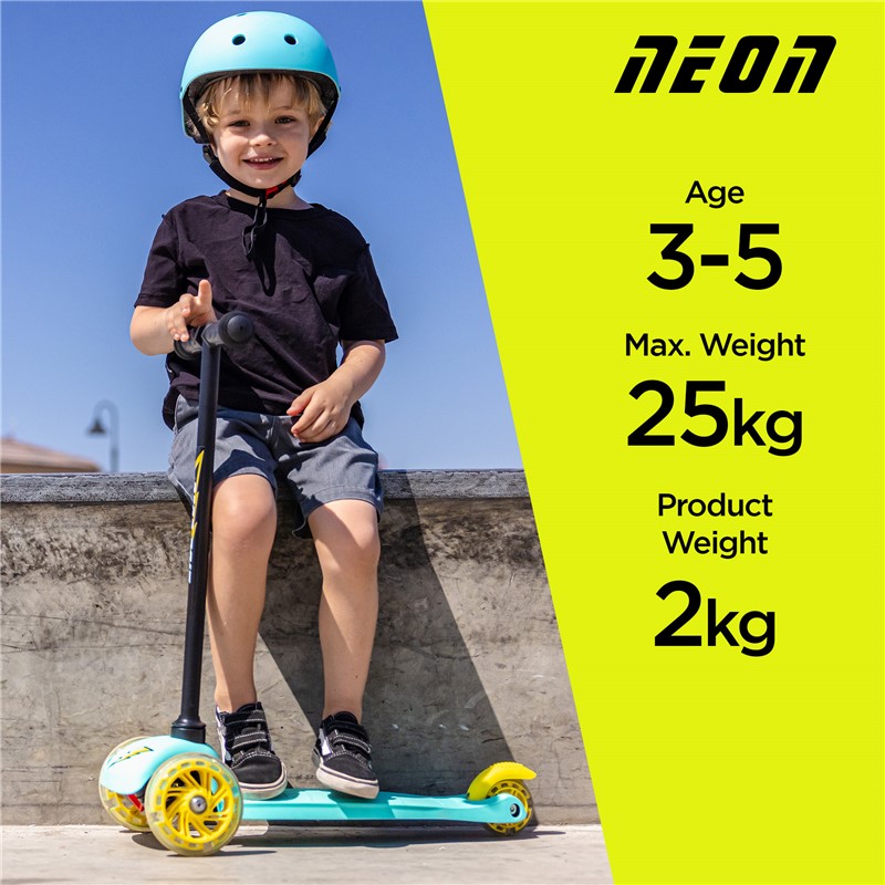 Patinete de tres ruedas de la gamas NEON de YVOLUTION, con manillar inclinable para una fácil conducción, ideal para los más pequeños. Las ruedas se iluminan a medida que el pequeño recorre las calles. Con este patinete aprenderán con confianza y dominarán el equilibrio.