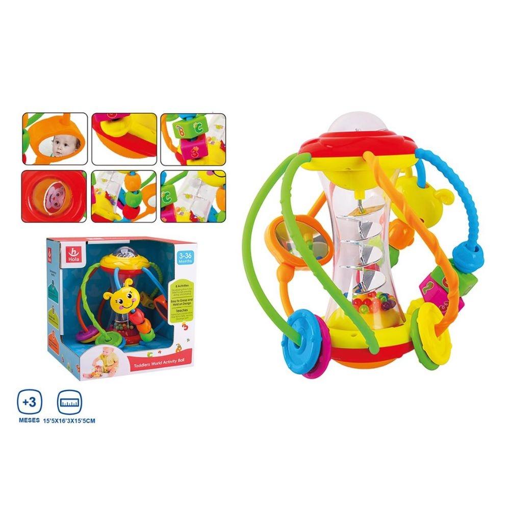 Su diseño integra cuentas móviles, un pequeño espejo y zonas de agarre fáciles para manos pequeñas, de modo que cada giro, sacudida o manipulación ofrece una experiencia distinta. Los colores contrastados favorecen el desarrollo visual, mientras que el sonido de las cuentas estimula la atención y el sentido auditivo.