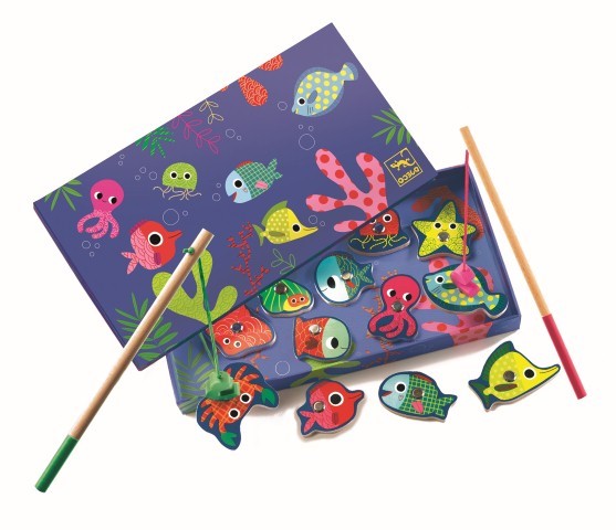 ¡Descubre la diversión marina con este encantador juego de pesca magnética! Perfecto para pequeños pescadores desde los 2 años, incluye dos cañas de pescar y 12 coloridos animales marinos de madera que flotan en una caja decorativa que se transforma en un precioso fondo oceánico.