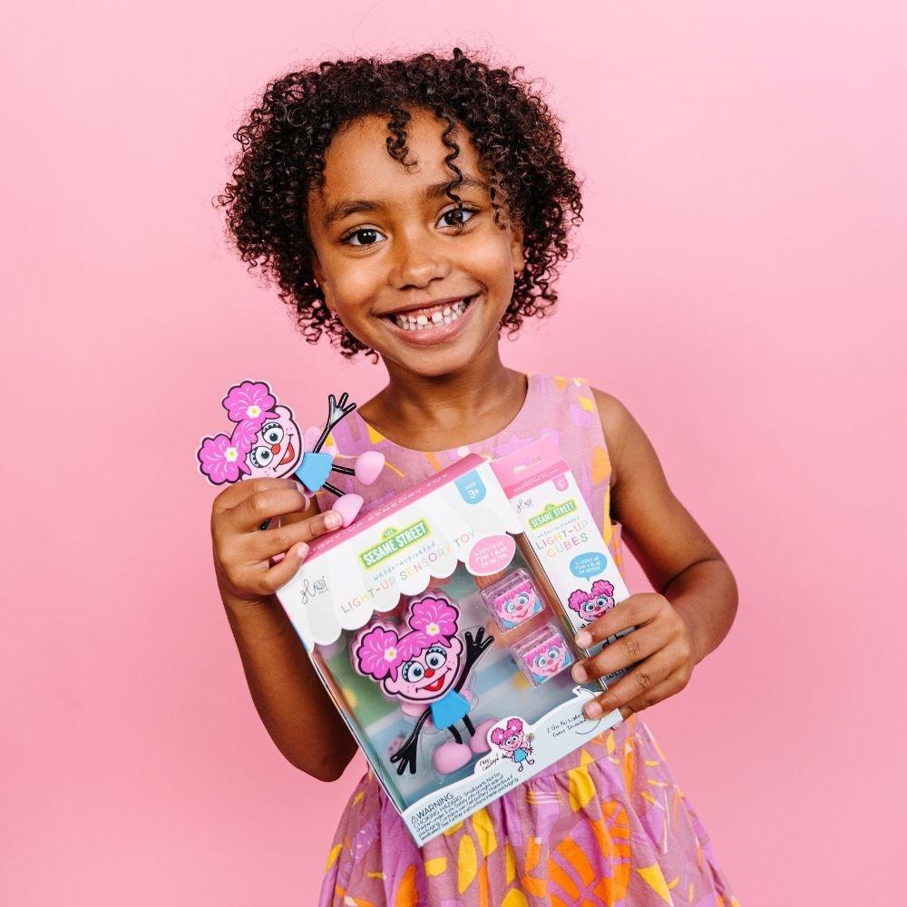 El Set de personaje Sesame Street Abby Caddabby + 2 cubos de luz lilas Glopals brillaran dentro del agua siendo tan sencillo apagarlo como sacándolos del agua.