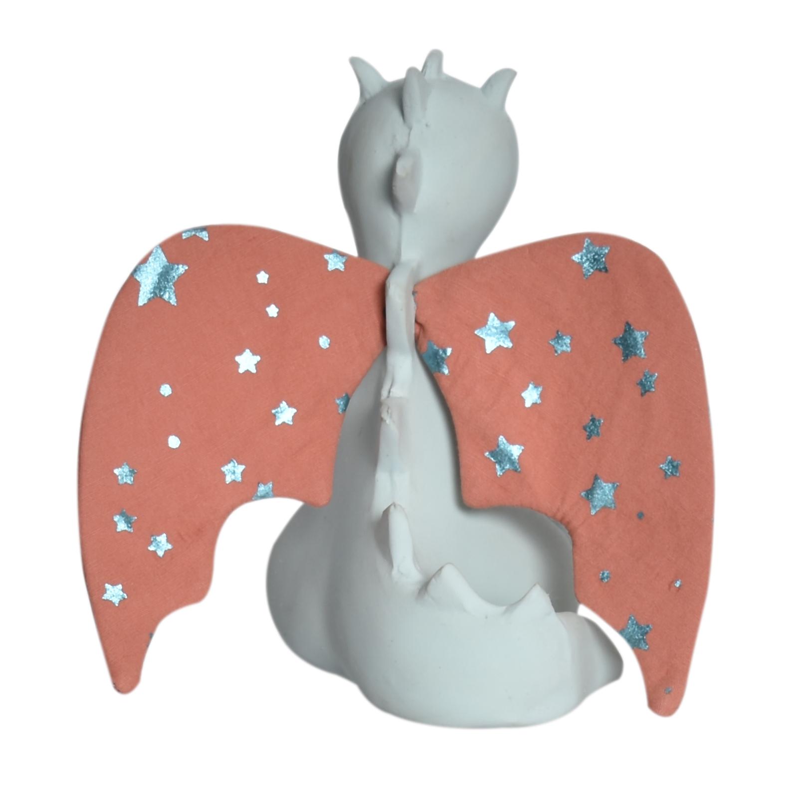 Incluye: Sonajero y mordedor con diseño de dragón bebé Sunshine (11 cm). Material y sostenibilidad: Caucho 100% natural y alas de algodón con textura, biodegradable y libre de BPA, ftalatos y PVC. Cuidado: Fácil de limpiar; lavar con agua tibia y jabón.