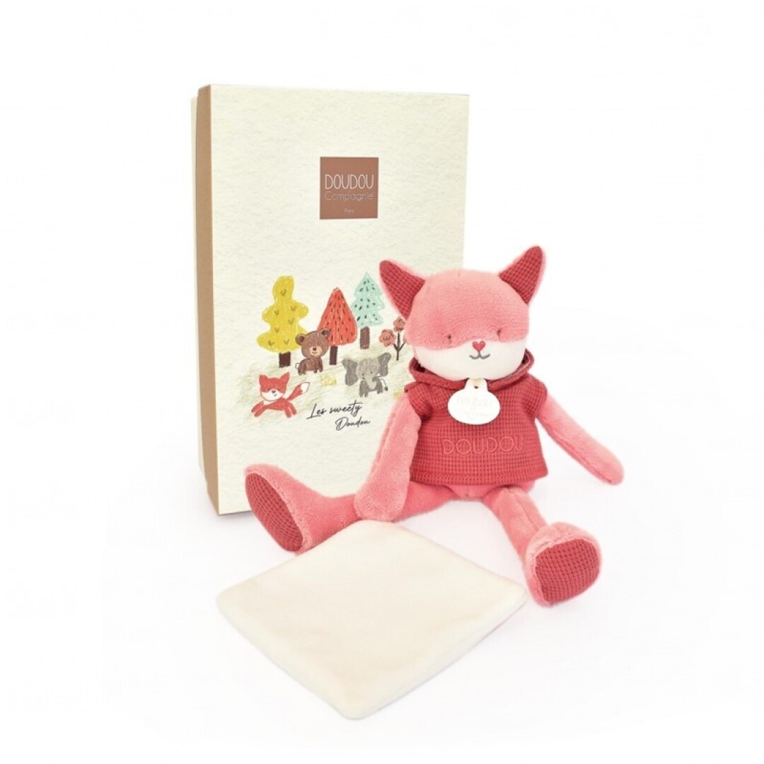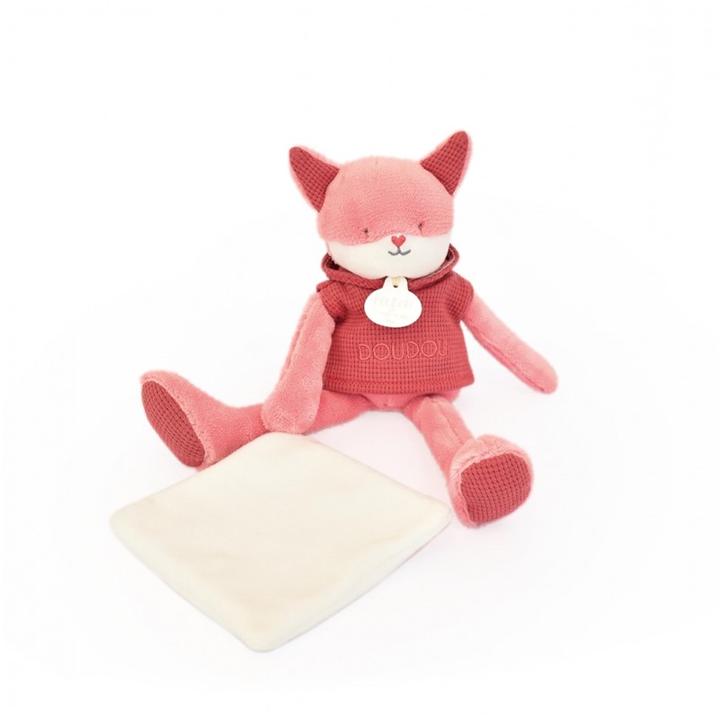¡Conoce a nuestro adorable zorro Terracota, el compañero perfecto para las aventuras de tu pequeño! Este encantador muñeco de 25 cm viene vestido con una moderna sudadera con capucha de algodón y luce con orgullo su medalla DOUDOU ET COMPAGNIE.