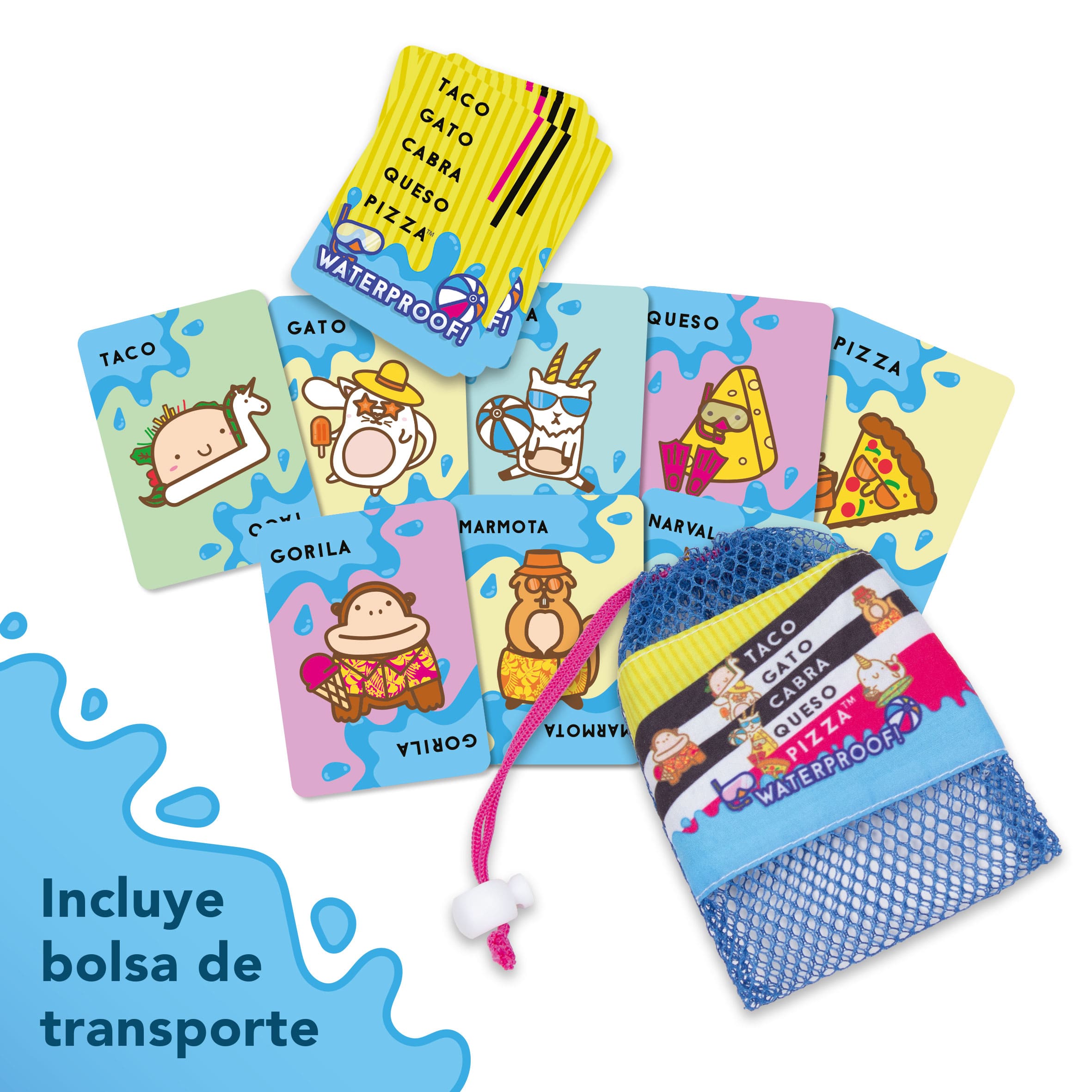 64 Cartas resistentes al agua. Incluye bolsa.